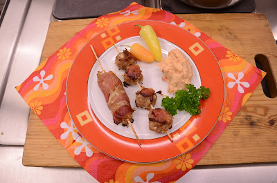 Meat skewers. Jen described them well - as meatloaf wrapped in bacon (then baked in the oven).